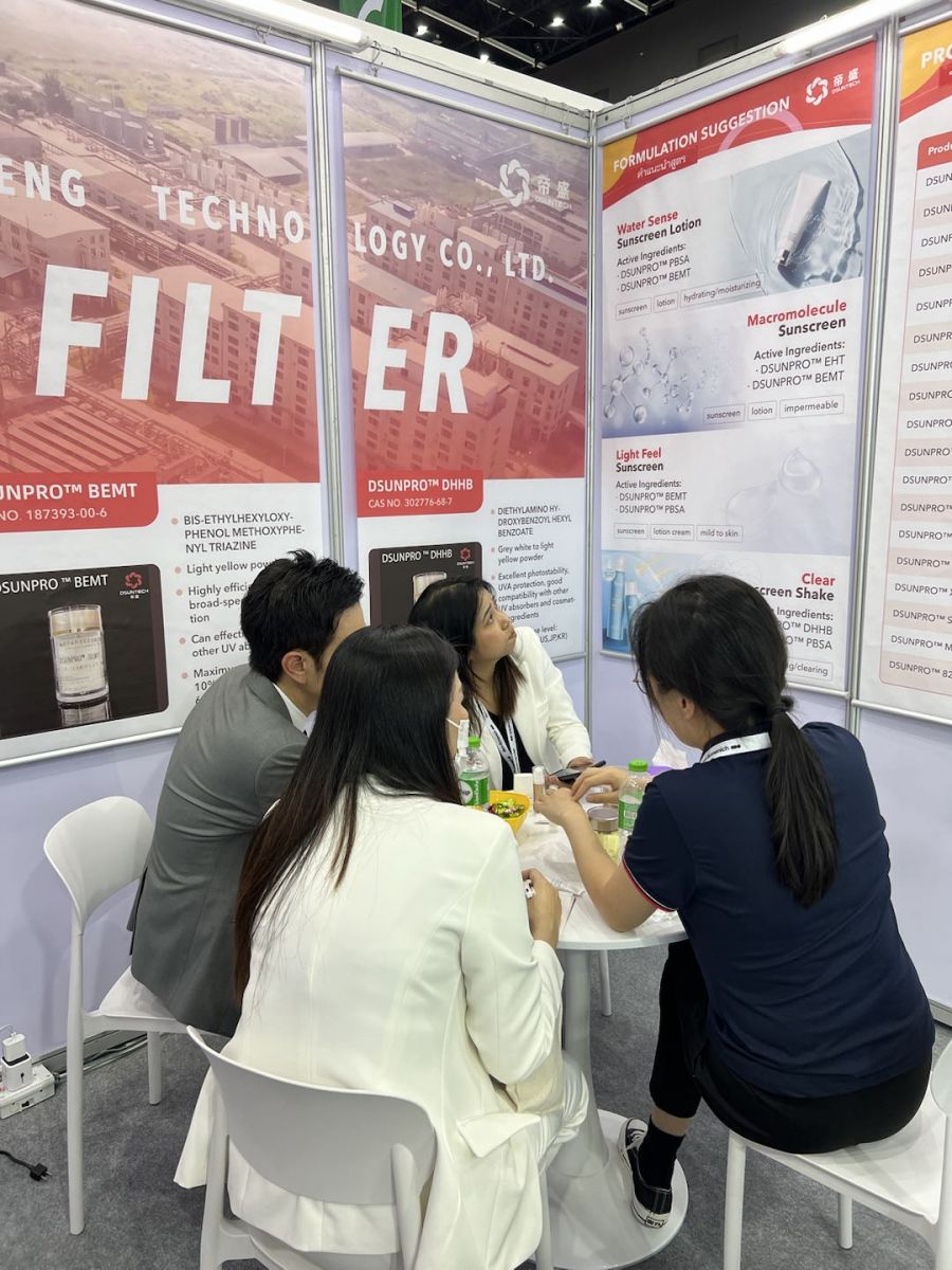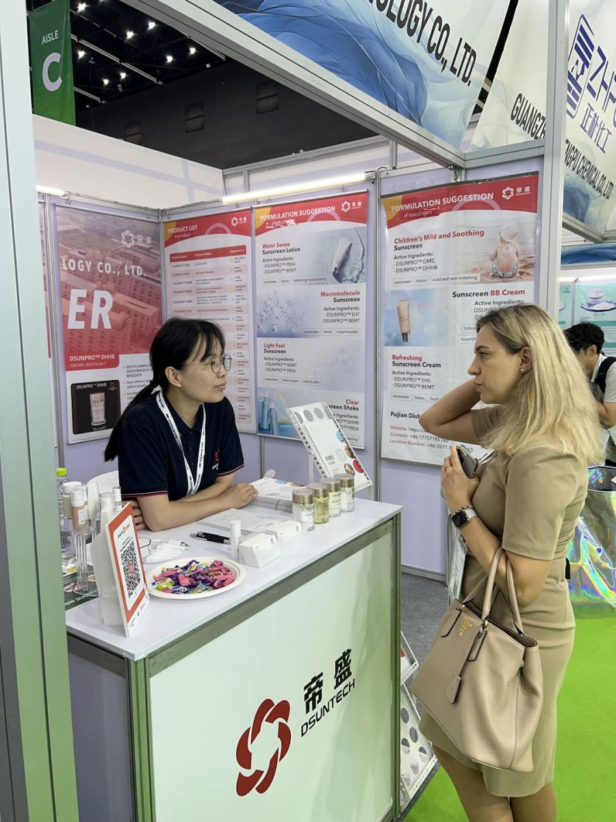 The marketing and sales team of Fujian Disheng Technology Co., Ltd. presented a variety of efficient and advantageous UV filters at the exhibition. During the exhibition, our booth was crowded with visitors. Our professional staff answered questions patiently and shared insights on the issues such as how to combine effective sun protection with fresh skin feeling.