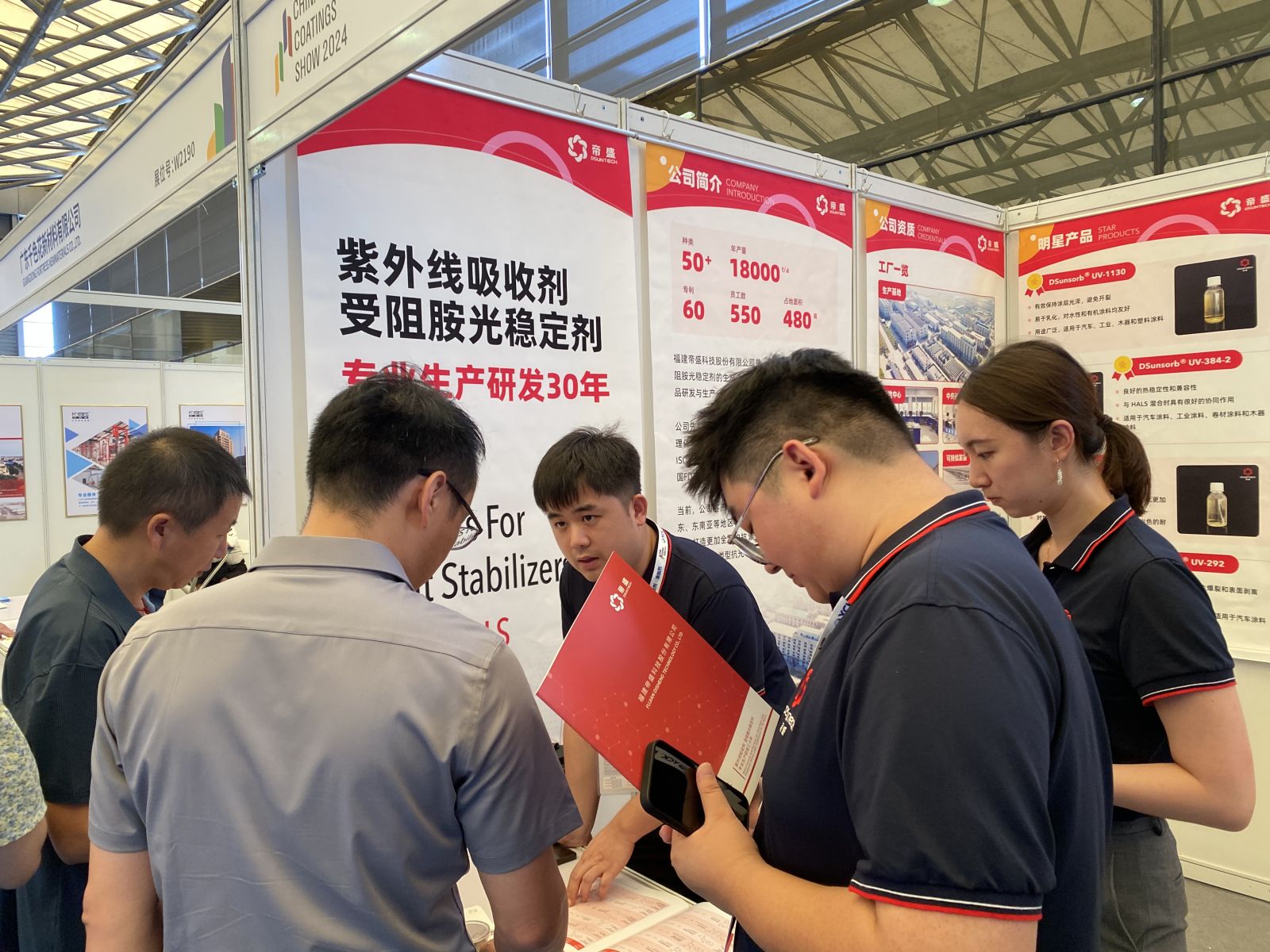 此外,帝盛科技的UV-900、UV-384-2、UV-292、UV-928、UV-328等多款产品亦获得众多行业代表的关注。帝盛科技市场团队还准备了有针对性的复配方案,并与许多新老朋友就多种紫外线吸收剂在不同性能功效的涂料、油漆中的应用以及适配度展开深入交流。